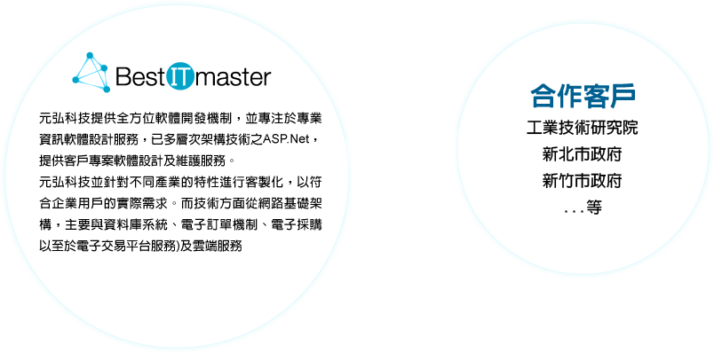 電話:03-5913254 傳真:03-4597471 地址:新竹縣竹東鎮中興路四段195號 e-mail:service@bestitmaster.com